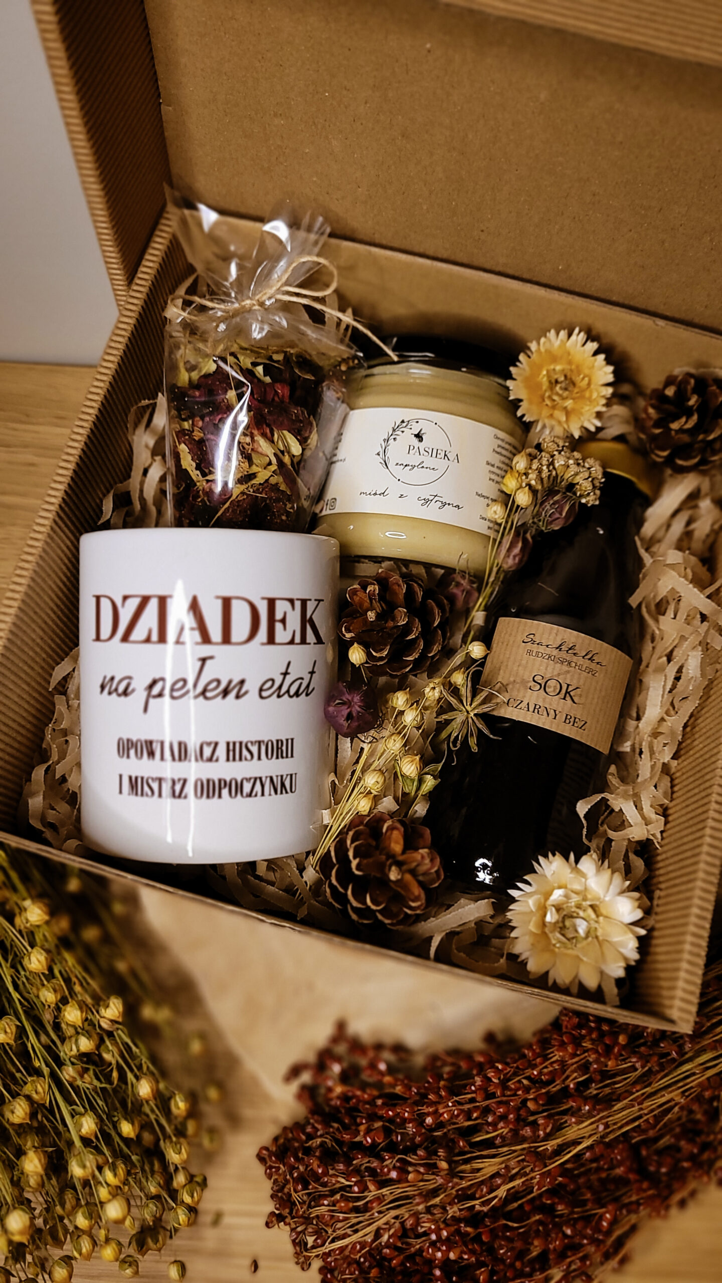 Z okazji Dnia Dziadka podaruj niezapomniany prezent, który wyrazi Twoją wdzięczność i miłość. Starannie skomponowany zestaw łączy naturalne, domowe produkty z unikalnymi dodatkami, które umilą każdy dzień. To idealny sposób, by okazać, jak bardzo cenisz swojego Dziadka.