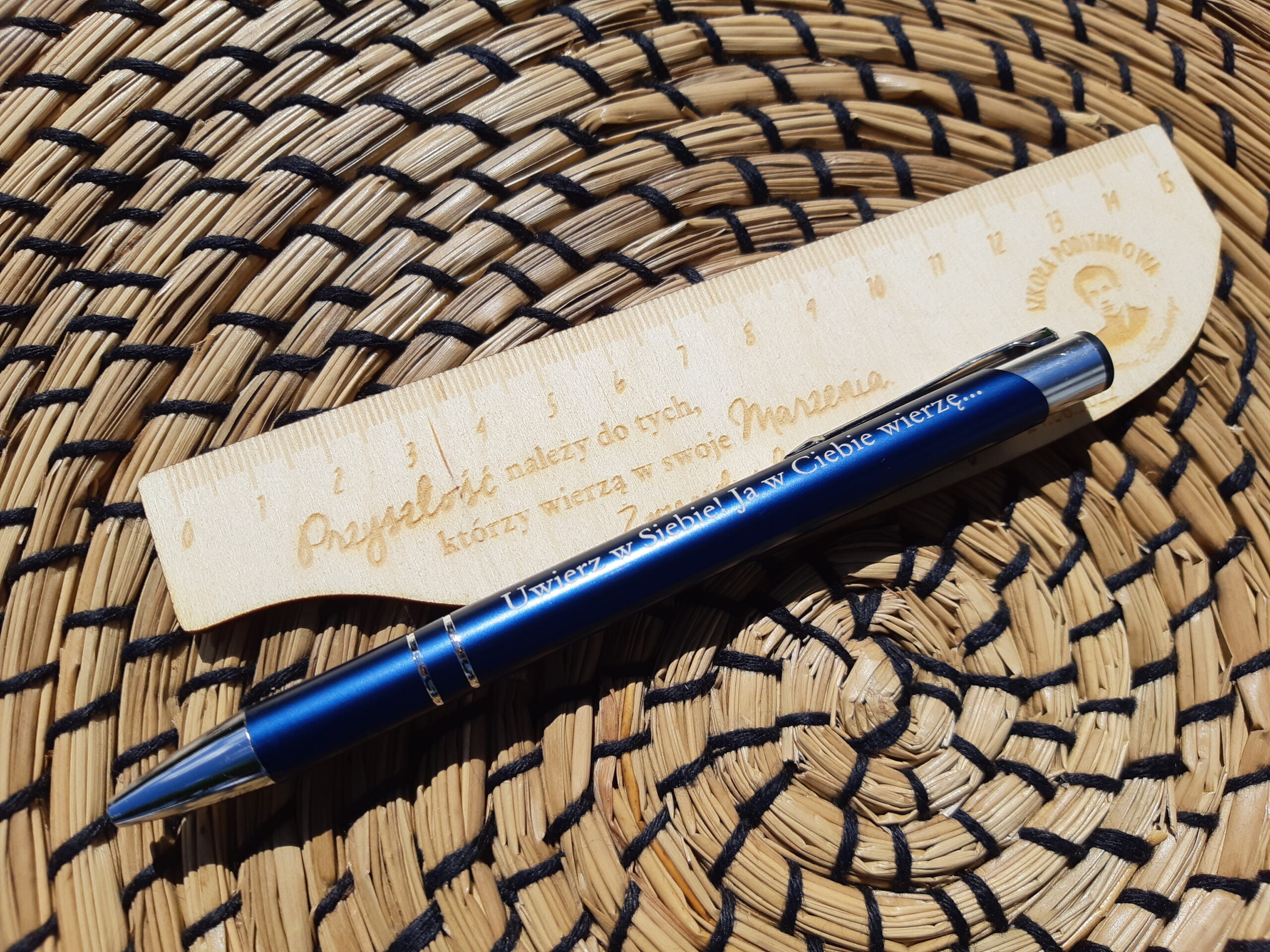! Oferta dotyczy tylko samej personalizowanej linijki z sklejki. Długopis znajdziesz na innej aukcji.
